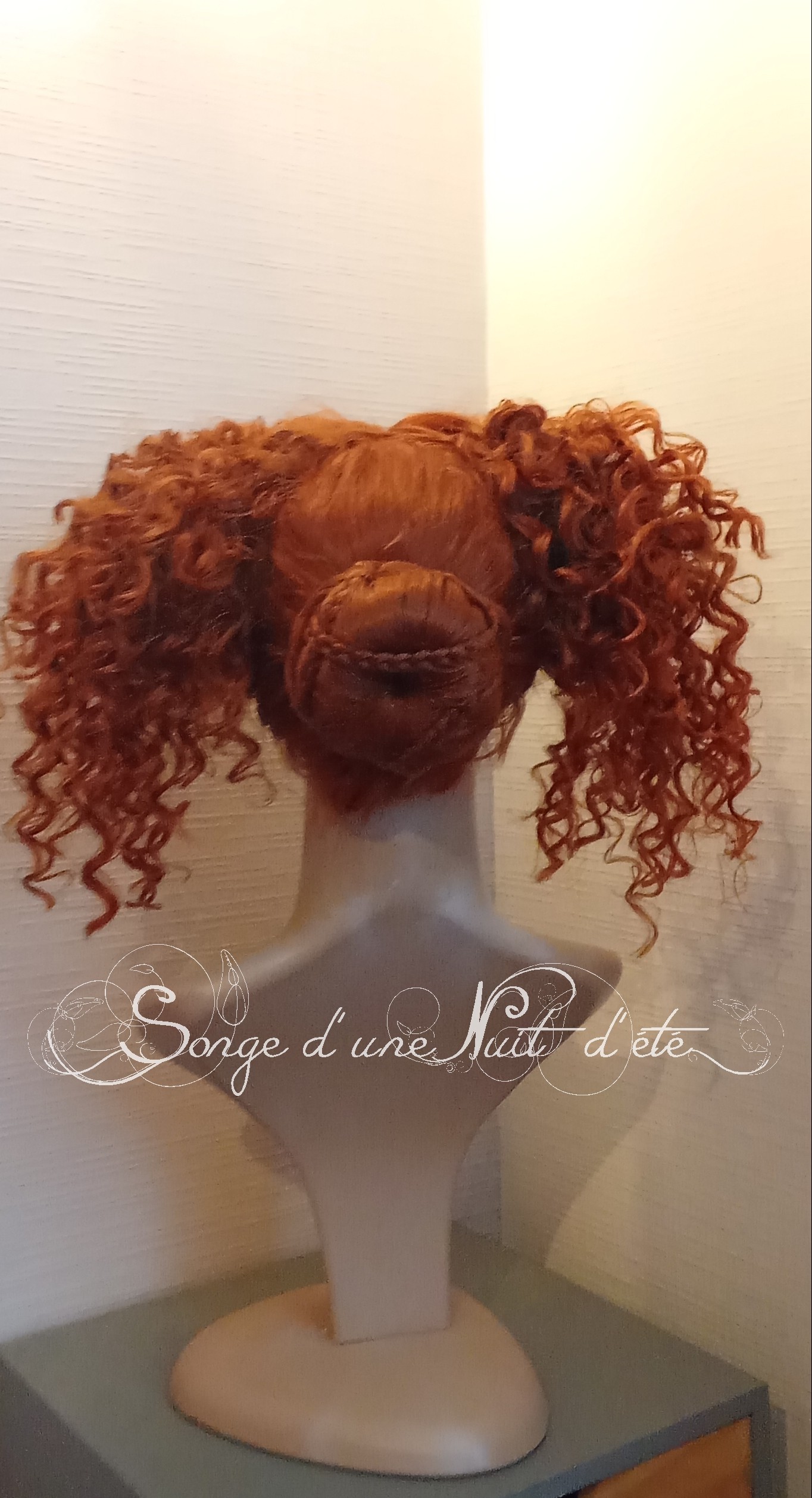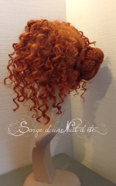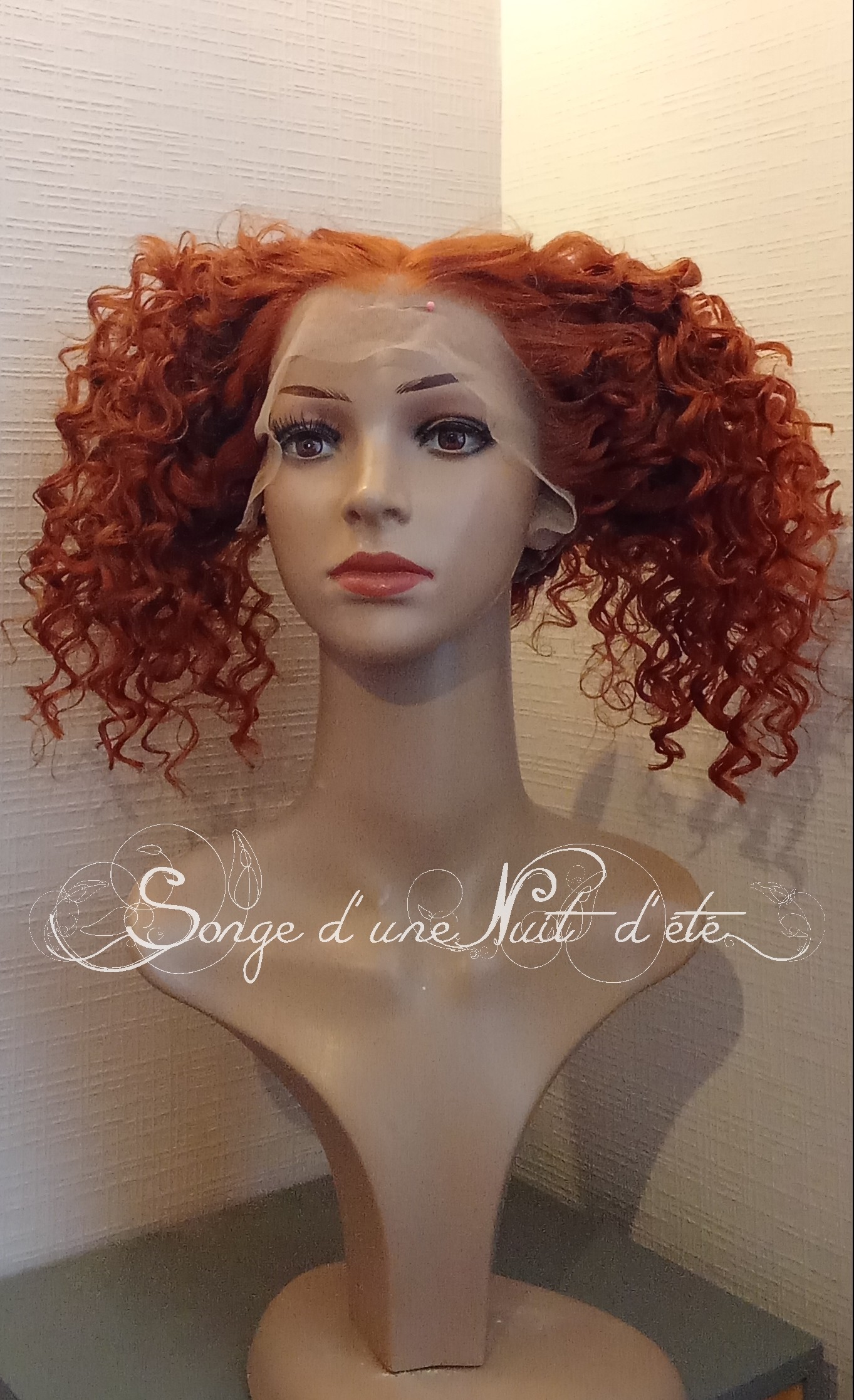 Perruque front lace d'un roux flamboyant, en fibre synthétique de belle qualité. Coiffure style à la hurluberlu correspondant au XVIIè siècle.
